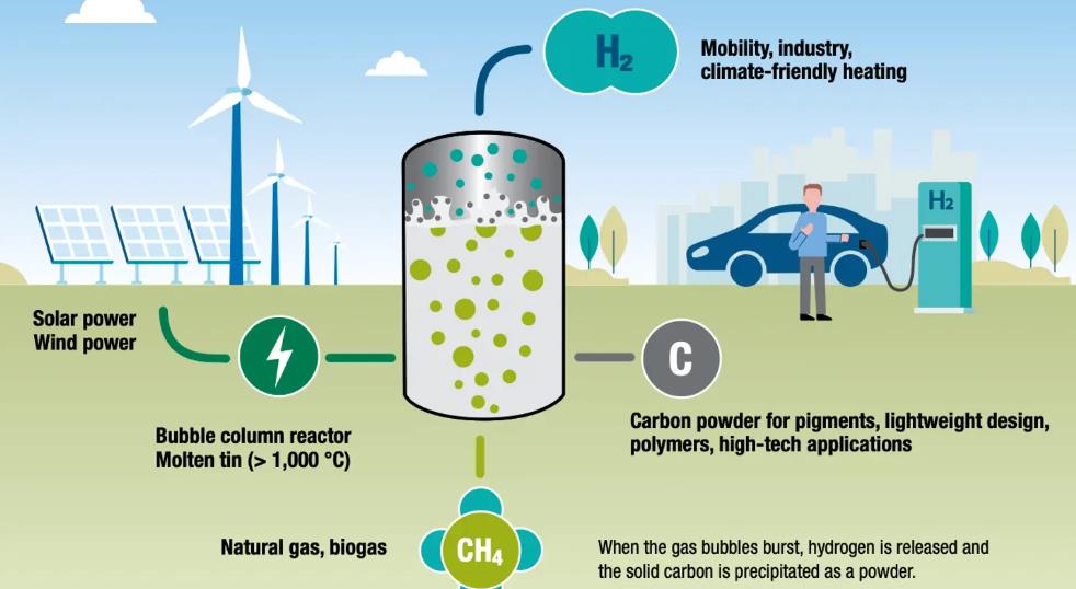 根據(jù)一份“熱解:氣候友好型制氫的潛力和可能應(yīng)用”報(bào)告可知,由熱解制成的“綠松石”氫氣是高效、清潔的,甚至可能是負(fù)碳的。