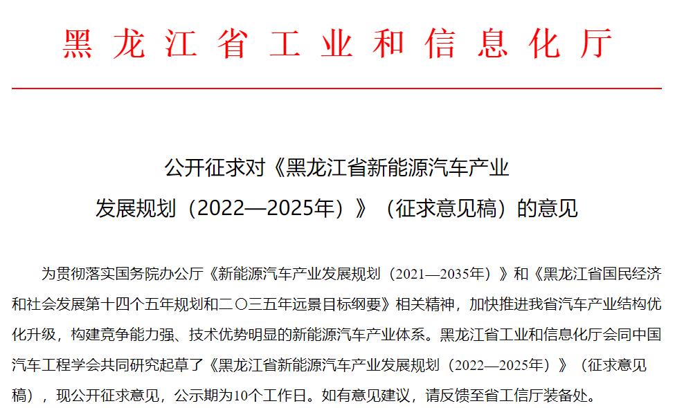2月8日,黑龍江省工業(yè)和信息化廳會同中國汽車工程學(xué)會共同研究起草了《黑龍江省新能源汽車產(chǎn)業(yè)發(fā)展規(guī)劃》,其中提到氫能相關(guān)內(nèi)容:經(jīng)過不斷努力,打造新能源汽車先進(jìn)制造業(yè)集群。