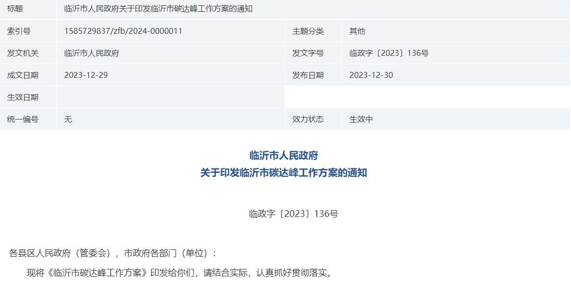 臨沂市人民政府公布了《臨沂市碳達峰工作方案》,明確了“十四五”和“十五五”期間臨沂市人民政府公布了《臨沂市碳達峰工作方案》,明確了“十四五”和“十五五”期間的非化石能源消費占比提高目標,以及單位GDP二氧化碳排放和能耗下降目標。方案還提出了加快發展新能源、推進鋼鐵和石化化工行業碳達峰、加強綠色低碳技術研發應用以及引育碳達峰碳中和人才等措施。其中,氫能方面將加快光儲氫產業發展,推廣純氫冶金技術,并試點應用氫能于物流業。