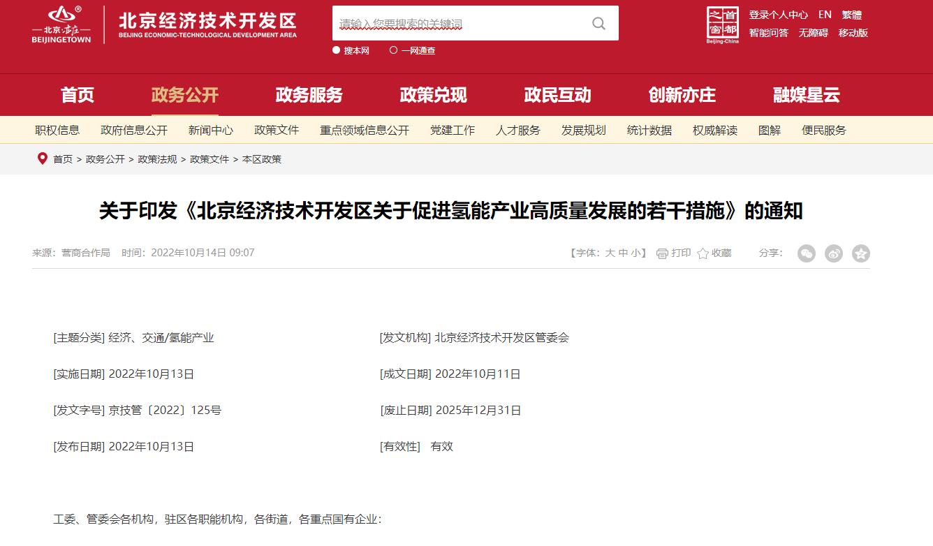 氫啟未來網獲悉,10月13日,《北京經濟技術開發區關于促進氫能產業》。