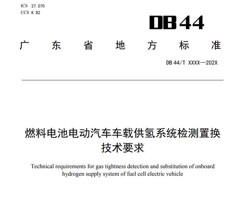 廣東《燃料電池電動汽車車載供氫系統檢測置換技術要求征求意見稿》