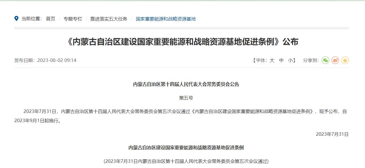 《內蒙古自治區建設國家重要能源和戰略資源基地促進條例》