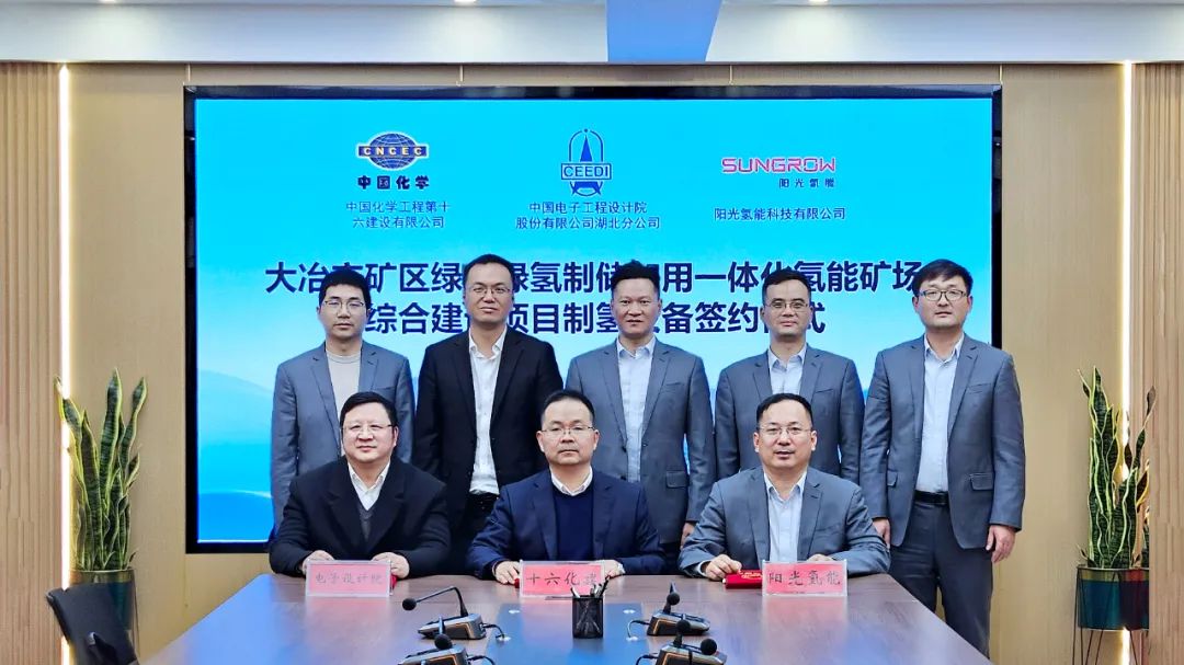 12月26日,國家清潔低碳氫能創(chuàng)新應用工程——大冶市礦區(qū)綠電綠氫制儲加用一體化氫能礦場綜合建設項目“制氫設備”合同正式簽約。中國化學工程第十六建設有限公司武漢分公司總經(jīng)理李靜濤,中國電子工程設計院股份有限公司湖北分公司執(zhí)行院長王共,陽光電源副總裁、陽光氫能董事長彭超才等領導出席。