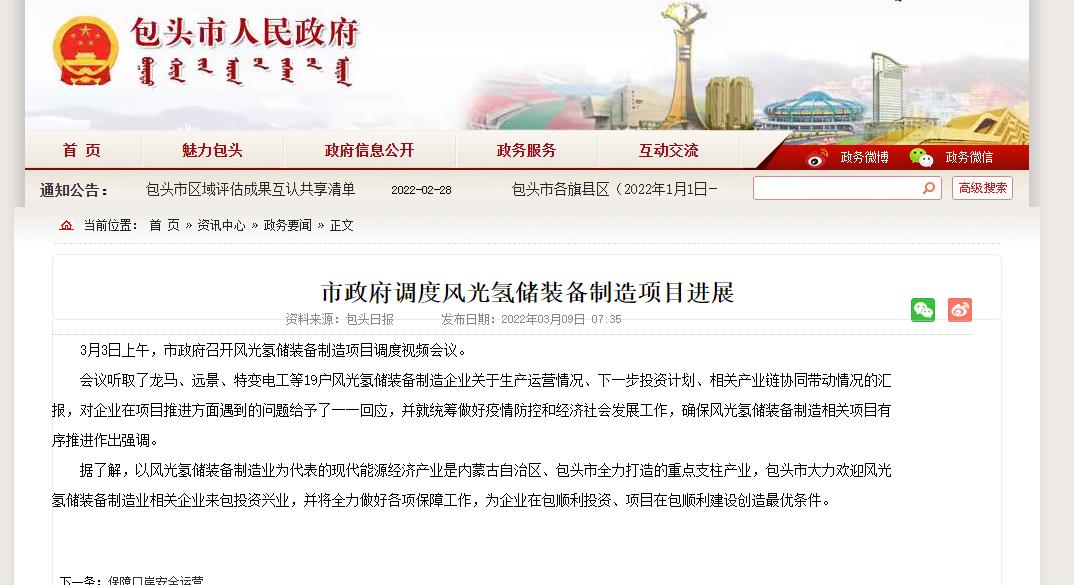 包頭市政府調(diào)度風光氫儲裝備制造項目進展