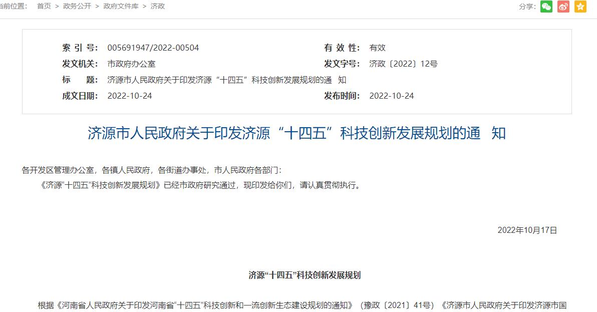 氫啟未來網(wǎng)獲悉,10月24日,濟(jì)源市人民政府發(fā)布關(guān)于印發(fā)濟(jì)源“十四五”科技創(chuàng)新發(fā)展規(guī)劃的通知