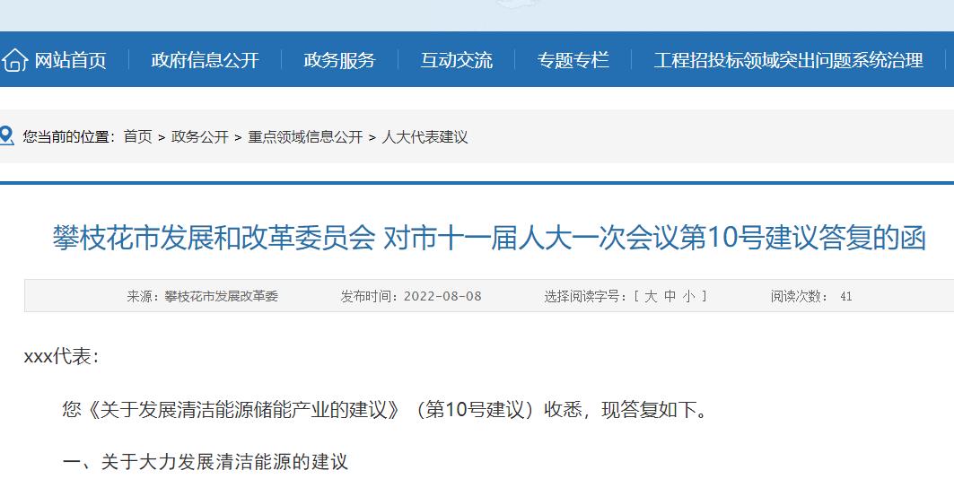 您《關(guān)于發(fā)展清潔能源儲(chǔ)能產(chǎn)業(yè)的建議》收悉,現(xiàn)答復(fù)如下。2021年,攀枝花市發(fā)展改革委委托相關(guān)機(jī)構(gòu),編制了《攀枝花市清潔能源中長(zhǎng)期發(fā)展規(guī)劃》,對(duì)水能、太陽(yáng)能、風(fēng)能、生物質(zhì)能、氫能的資源量進(jìn)行了分析,促進(jìn)“水風(fēng)光氫儲(chǔ)”五位一體、多能互補(bǔ)、協(xié)調(diào)發(fā)展,確定了具體發(fā)展目標(biāo),預(yù)計(jì)到2030年,攀枝花水電裝機(jī)661萬(wàn)千瓦,光伏發(fā)電裝機(jī)提升至450萬(wàn)千瓦,風(fēng)電裝機(jī)提升至250萬(wàn)千瓦。