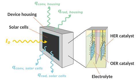 現(xiàn)在,由烏爾姆大學(xué)的馬蒂亞斯·梅( Matthias May)領(lǐng)導(dǎo)的一組德國研究人員設(shè)計(jì)出一種可以在低溫下生產(chǎn)氫氣的技術(shù)。該方法通過使用低凝固點(diǎn)的電解質(zhì)(例如稀硫酸),以允許在較低溫度下使用水。這與整個(gè)設(shè)備的嚴(yán)格熱控制相結(jié)合,以防止熱量散失到環(huán)境中,并將額外的熱能從太陽能電池轉(zhuǎn)移到電解質(zhì),從而使內(nèi)部工作溫度達(dá)到10°C左右。