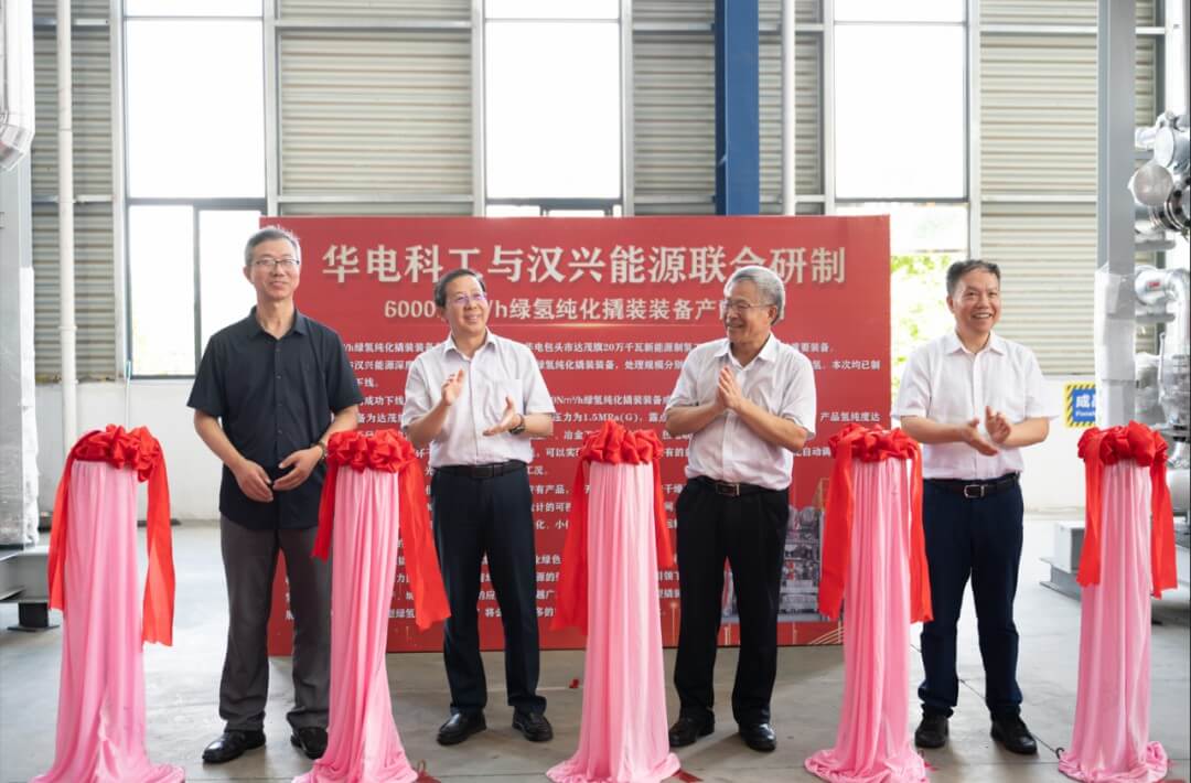 8月1日,中國華電科工集團有限公司(以下簡稱“華電科工”)與上海漢興能源科技股份有限公司(以下簡稱“漢興能源”)聯合開發的6000Nm3/h電解水綠氫純化撬裝裝備下線儀式暨戰略合作協議簽訂儀式,在漢興能源靖江制造基地舉行。