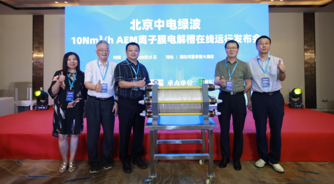 8月15日,在全國生態(tài)日當天,由北京中電綠波科技有限公司研制的全國首臺在線運行10Nm3/h AEM離子膜電解槽正式發(fā)布。國際氫能協(xié)會副主席、清華大學教授毛宗強、清華大學教授李振山、東北電力大學教授王擎等國內(nèi)知名氫能專家和北京中電綠波科技有限公司總經(jīng)理程朝卿等出席發(fā)布會。