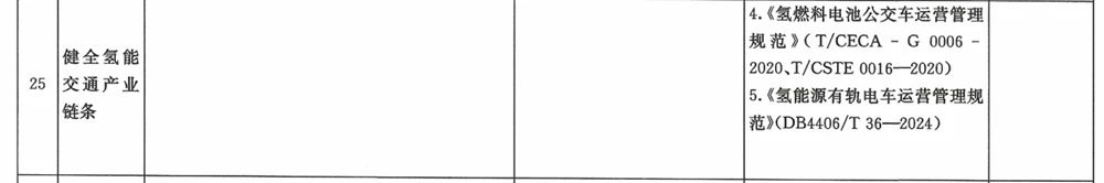 形成的成果包括《廣東省燃料電池汽車加氫站建設管理暫行辦法》(粵建城(2023)90號)、《氫燃料電池公交車運營安全及維護管理指引》(佛公交(20224J268號)、《佛山市南海區人民政府辦公室關于印發佛山市南海區促進加氫站建設運營及氫能源車輛運行扶持辦法(2022年修訂)的通知》(南府辦(2022J24號)、《氫燃料電池公交車運營管理規范》(T/CECA-G0006-2020、T/CSTE 0016-2020)、《氫能源有軌電車運營管理規范》(DB4406/T 36-2024)