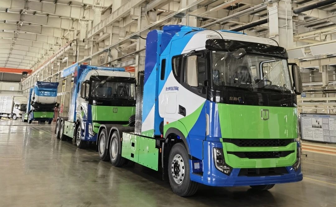 此次下線的氫能重卡由榮程新能與吉利遠程聯合開發生產,計劃共生產600輛,本次下線首批100輛。車輛基于遠程星瀚G開發,圍繞乘用化、家居化、智能化、高可靠、經濟性核心亮點,面向新能源重卡場景使用打造的行業高端車型,于2024年12月納入工信部第390批產品公告。