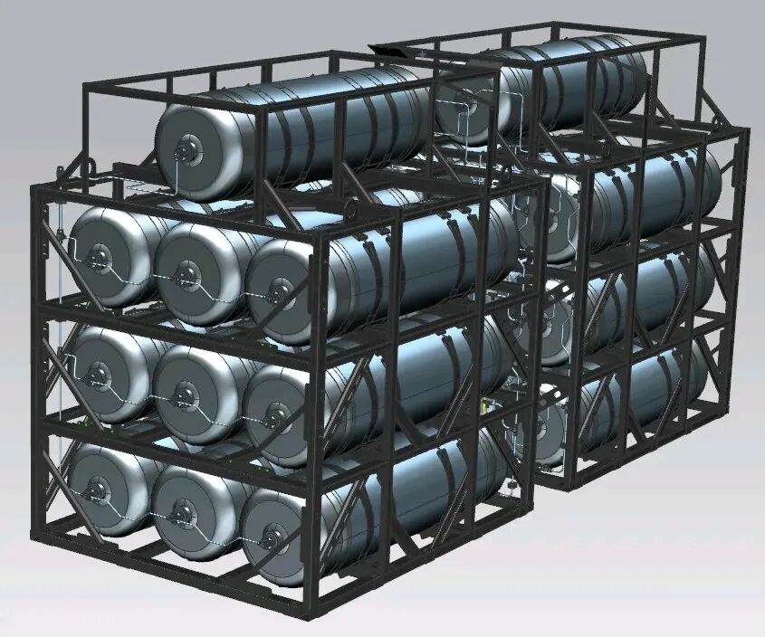 此次首航的氫能源機車由中車戚墅堰制造,整車功率約1000kW,滿足當地貨運作業需求。它采用氫能與電池混合動力系統,告別傳統內燃動力組件,實現了真正意義上的“零排放”。而其中,舜華新能源提供的車載供氫系統堪稱機車的“能量心臟”。該車載供氫系統采用IV型瓶,工作壓力達35Mpa,儲氫質量高達183kg,能夠為機車提供穩定且充足的氫氣供應。在系統設計上,舜華新能源采用了先進的輕量化設計理念。以8g沖擊力要求進行結構及強度仿真,在確保系統安全可靠的前提下,最大程度減輕了系統重量,使整體重量比傳統供氫系統大幅降低,為機車的輕量化設計貢獻了重要力量,有效提升了機車的運行效率和性能。