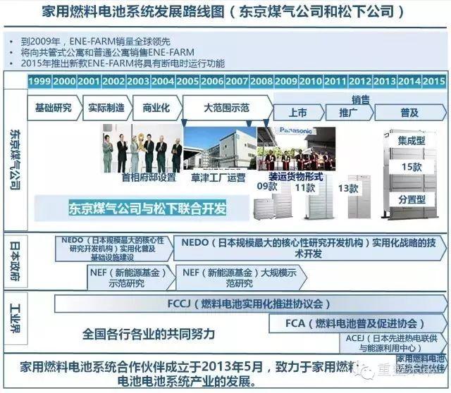 ENE-FARM項目的成功依賴于企業、政府和工業界的通力配合。在1999年開啟基礎研究后,政府看中了這個模式對于能源資源匱乏的日本的巨大作用,能效的提升不僅降低了一次能源消耗,獨立的能源系統也能增加系統的穩定性和安全性。為了促進這一模式的落地,日本政府首先投入大量的資金來支持關鍵技術的攻關,在產品出現后,首相官邸還率先安轉這一設備,為這個模式站臺.