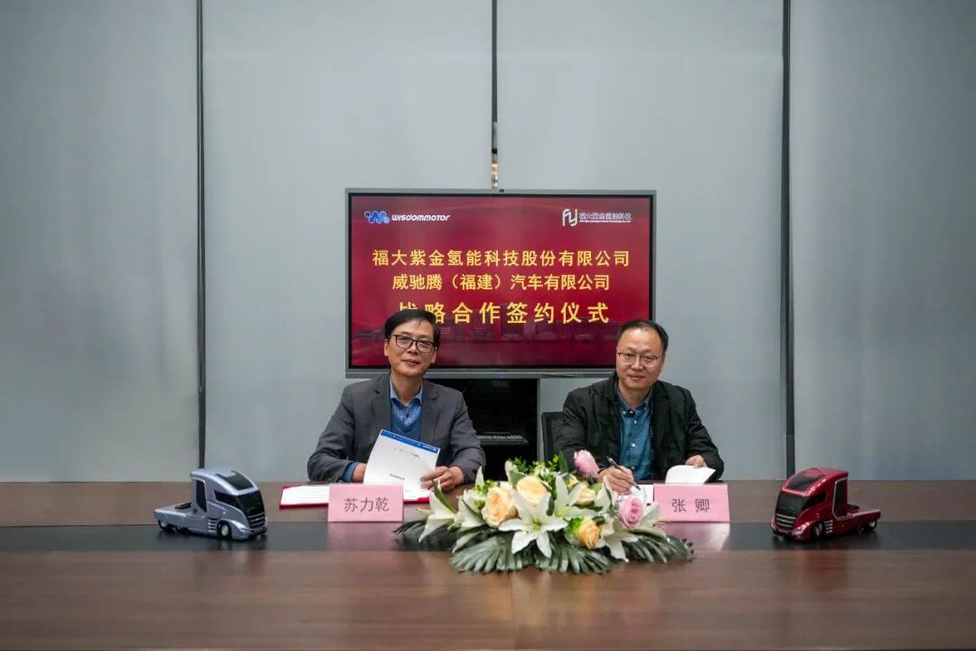 2023 年12月18日,威馳騰(福建)汽車(chē)有限公司(簡(jiǎn)稱(chēng)“威馳騰”)與福大紫金氫能科技股份有限公司(簡(jiǎn)稱(chēng)“福大紫金”)在福建漳州共同簽署一項(xiàng)具有里程碑意義的戰(zhàn)略合作協(xié)議。福大紫金總經(jīng)理張卿,威馳騰創(chuàng)始人兼總裁蘇力乾攜公司領(lǐng)導(dǎo)、技術(shù)高管等出席見(jiàn)證了簽約儀式。