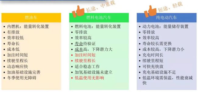 原理和原料來源弄清楚后,我們還是回到前面問題,為什么有了純電動汽車產業,還要搞氫燃料汽車產業呢?首先是互補,下圖說的比較清楚,氫燃料汽車加注時間短,續航時間長,低溫不受影響,用于中長途的大巴,重卡貨車有天然的優勢。因此起碼在開始階段,氫燃料電池汽車與純電動并不是競爭關系,而形成了很好的互補效應。最近由于固態電池的忽悠,氫能源狠狠地下殺了一波,逼著大家交出籌碼,而美股的Plug,巴拉德均創出了新高,實際上,固態電池就算能量400wh/kg,也只有氫電池的五到十分之一而已,仍然無法在重卡使用,目前固態電池能量密度還只有理論最大值的一半,5年后才能商業化,充電速度遠比加氫慢、電網沖擊等都解決不了。另外最近大家才認識到,就是氫氣作為儲能介質的優勢,只要有足夠的容器,氫氣可以承擔小時級別到月級別的儲能。能源上有三大應用,發電,儲能和交通,以前能源只能做到一個到兩個,而氫燃料電池可以橫跨三個市場,改變未來的能源結構。最后還有一點,還是回到環保上,就是純電動汽車電池的廢物處理,其實是很大的成本和麻煩,目前大家都睜一只眼閉一只眼,避而不談,但不久就會面臨這個頭疼的問題,鋰電池如果不處置好也許會造成比碳排放更大的環境污染,這點燃料電池的后續優勢又會體現出來。