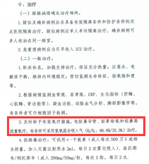 1、氫氣寫入中國新型冠狀病毒肺炎診療方案
