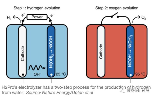 H2Pro的制氫技術為E-TAC(Electrochemical-Thermally Activated Chemical),即電化學-熱能激活化學技術。搭載該技術的裝置與堿性電解槽結構相似,不含質子交換膜,但有一個關鍵不同點:使用高溫液體催化陽極釋放氧氣。
