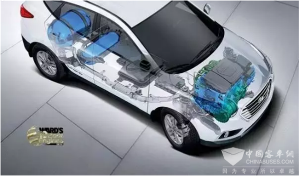 2013年,韓國(guó)現(xiàn)代開(kāi)始批量生產(chǎn)Tucson FCEV燃料電池車,這是全球第一款量產(chǎn)氫燃料電池汽車(有媒體認(rèn)為現(xiàn)代ix35 FCEV與此一脈相承);