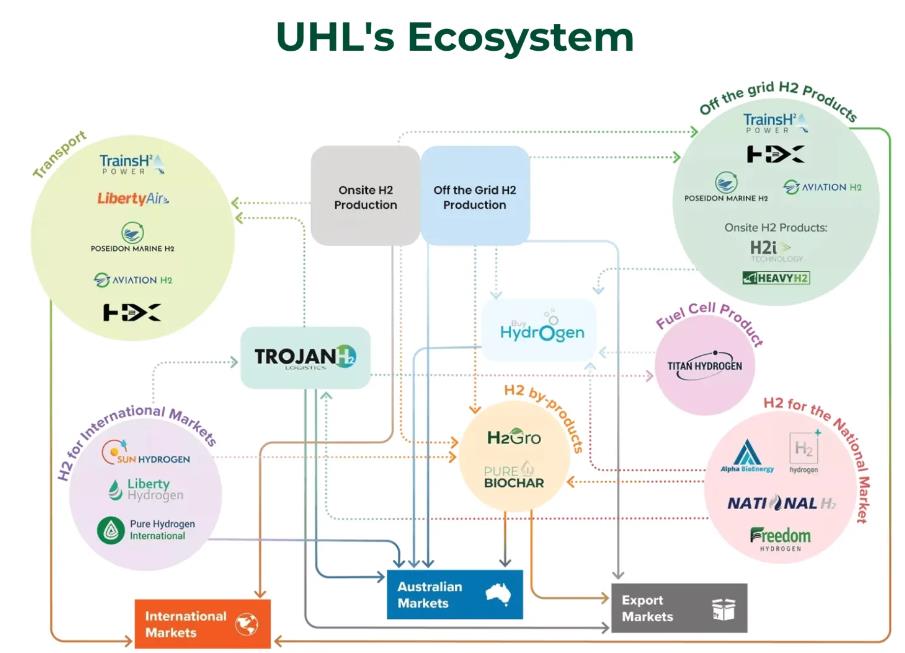 隨著這些公司提供氫動力卡車、發電機、廢物制氫裝置、氫噴射系統、超高效燃料電池和船用氫燃料系統等產品,UHL相信它正在打造“世界上最大、最多樣化的氫綜合企業”。