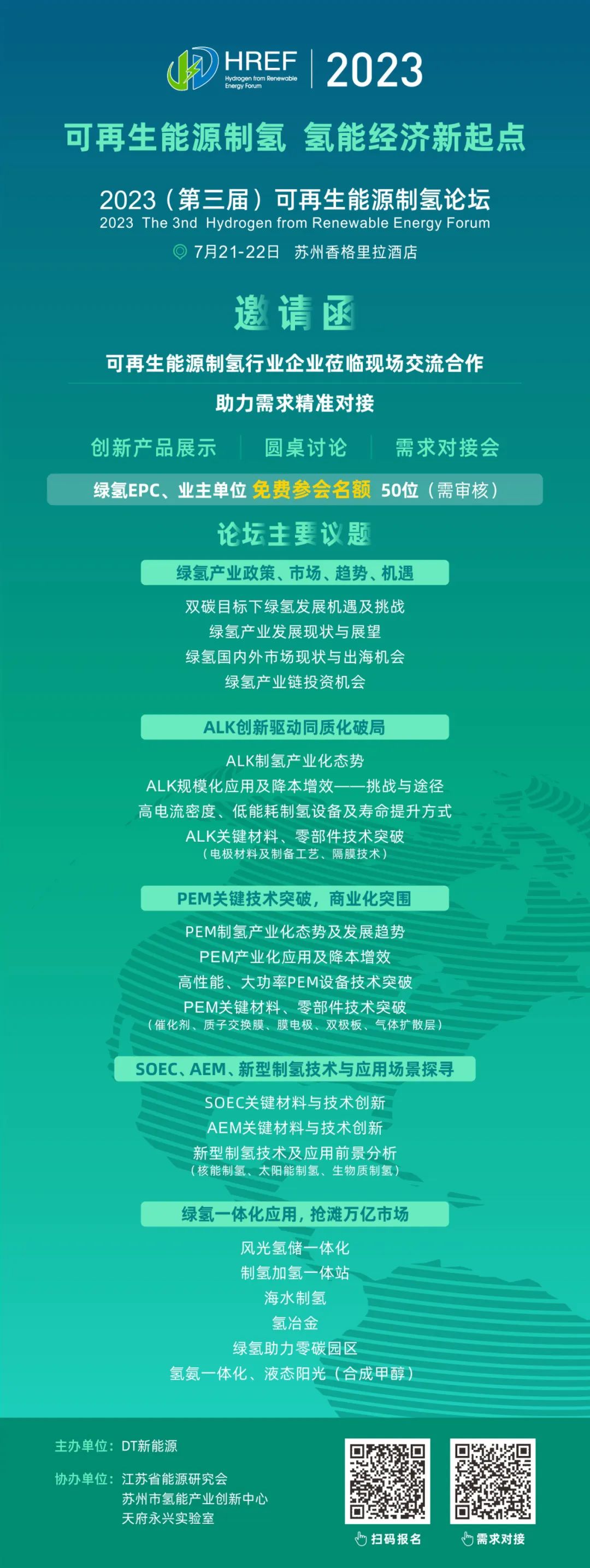 DT新能源特針對綠氫EPC及業主單位限額開放免費參會通道(添加工作人員微信獲取),免費參會名額限額50位(參會名額需審核),先到先得!