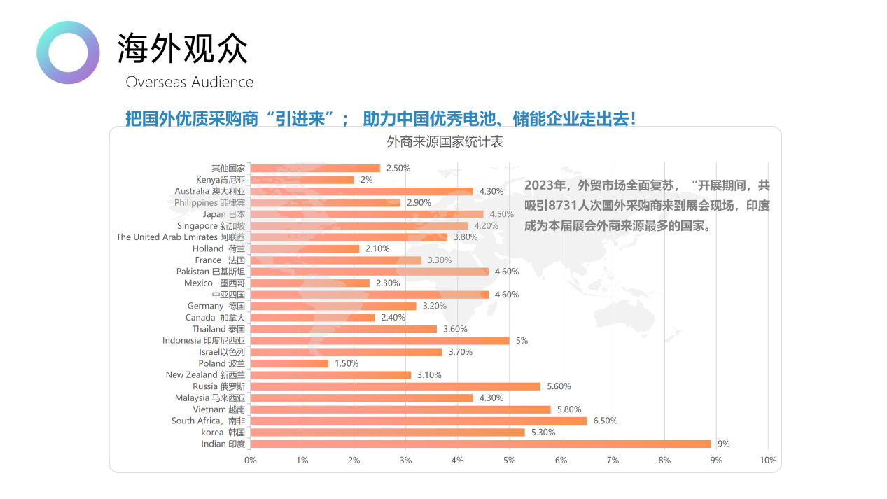 2023年,外貿(mào)市場全面復(fù)蘇,“開展期間,共吸引8731人次國外采購商來到展會現(xiàn)場,印度成為本屆展會外商來源最多的國家。