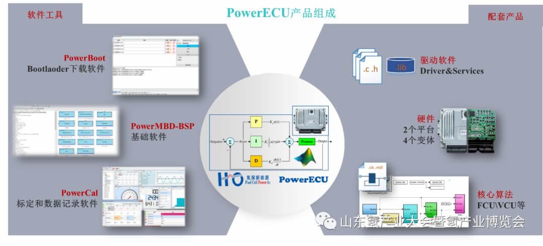 1)PowerECU控制系統平臺:該產品是氫探新能源完全自主研發設計,具備自主知識產權的控制系統產品,產品的設計滿足MBD開發流程、以及功能安全要求。PowerECU主要由:PowerECU硬件產品、PowerECU基礎軟件、PowerECU燃料電池控制軟件、PowerECU燃料電池控制輔助設計軟件等4大部分組成。