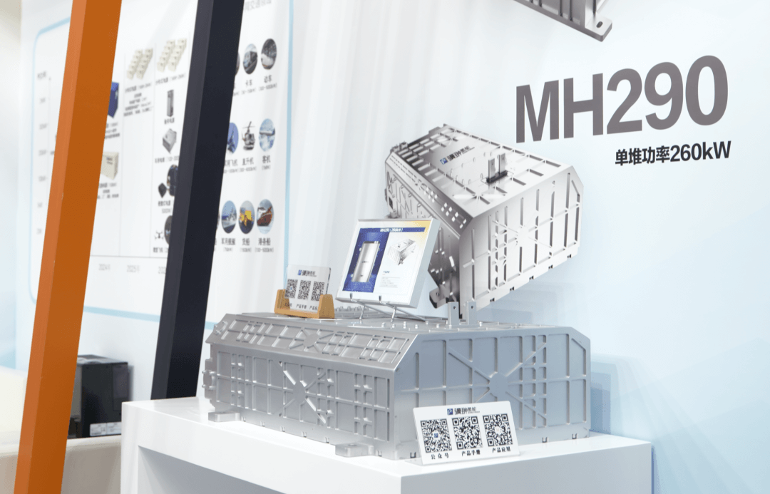 本次參展的MH170電堆,單堆功率為5-216kW,裸堆功率密度4.7kW/L,可實(shí)現(xiàn)-39°C無(wú)輔助啟動(dòng),相關(guān)技術(shù)參數(shù)處于行業(yè)一流水平。該產(chǎn)品基于整車需求進(jìn)行創(chuàng)新性設(shè)計(jì),目前已在重卡、環(huán)衛(wèi)車、客車、冷鏈物流車等燃料電池車型進(jìn)行了應(yīng)用驗(yàn)證。