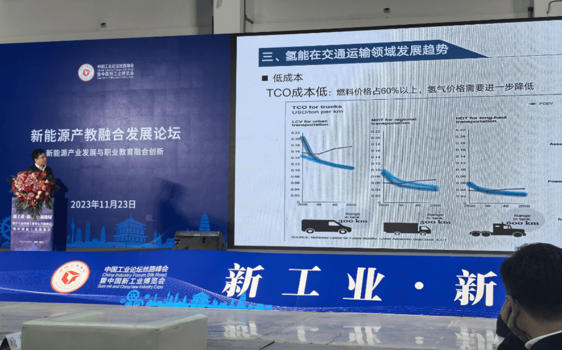 佛山大學(xué)特聘研究員周飛琨圍繞《氫能源及其在交通運(yùn)輸領(lǐng)域的發(fā)展趨勢》進(jìn)行了主題演講,介紹了氫能產(chǎn)業(yè)化的基礎(chǔ)和背景,氫能及制備儲運(yùn)、氫氣發(fā)電、氫動(dòng)力在交通運(yùn)輸領(lǐng)域的應(yīng)用,氫能及燃料電池汽車生態(tài)鏈條的構(gòu)成。指出在雙碳目標(biāo)下,交通運(yùn)輸領(lǐng)域中最迫切的需求是商用車,尤其是中重型卡車的碳減排。氫能在交通領(lǐng)域高功率、高動(dòng)力性要求、高效率、長續(xù)航、長壽命、低成本、加注時(shí)間的便利性要求是發(fā)展趨勢,并提出氫能在交通運(yùn)輸業(yè)“整車-動(dòng)力系統(tǒng)-燃料電池”聯(lián)動(dòng)設(shè)計(jì)的發(fā)展建議。氫交通運(yùn)輸產(chǎn)展建
