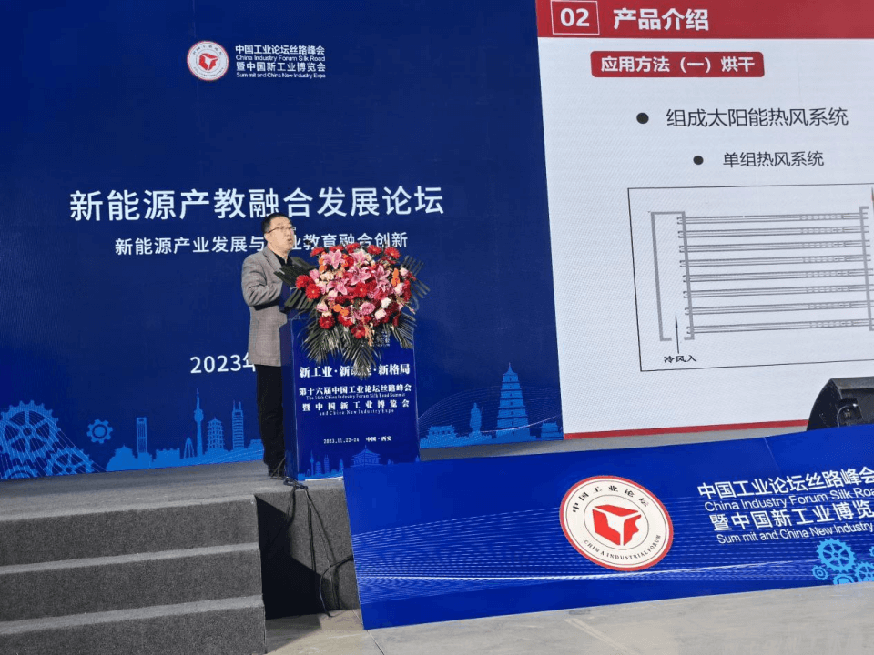 山東華宇工學(xué)院袁家普教授就《雙碳背景下新能源創(chuàng)新技術(shù)應(yīng)用》進(jìn)行了主題演講。介紹了學(xué)院的專業(yè)設(shè)置、產(chǎn)學(xué)研合作等基本情況,向大家分享了學(xué)校參與企業(yè)的研發(fā)情況,對創(chuàng)新產(chǎn)品雙通管式太陽能的熱風(fēng)系統(tǒng)的應(yīng)用和空氣源熱泵的創(chuàng)新進(jìn)行了詳細(xì)介紹,以及學(xué)校運(yùn)用現(xiàn)代手段對智慧控制平臺的開發(fā)應(yīng)用情況。