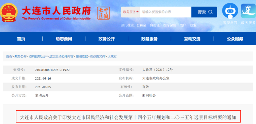 近日,大連市人民政府正式印發(fā)《大連市國民經(jīng)濟和社會發(fā)展第十四個五年規(guī)劃和二〇三五年遠景目標(biāo)綱要》的通知。