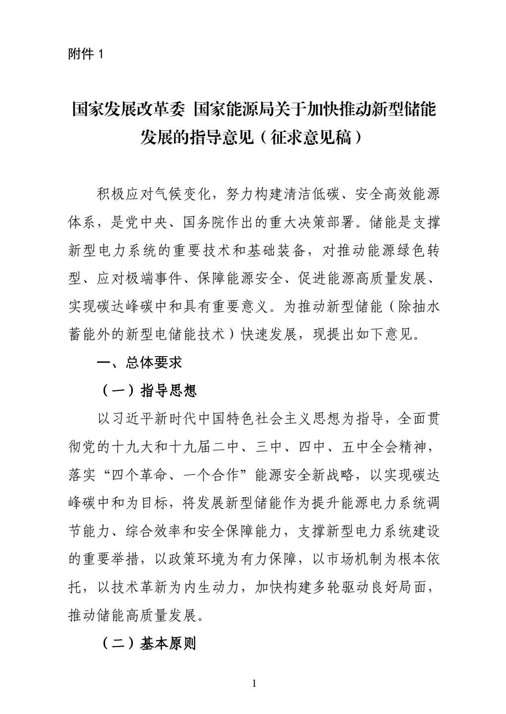 1.國家發(fā)展改革委 國家能源局關(guān)于加快推動新型儲能發(fā)展的指導(dǎo)意見(征求意見稿)