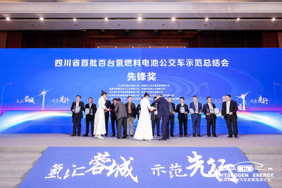 大會同期舉辦了四川省首批百臺氫燃料電池公交車示范總結會。
