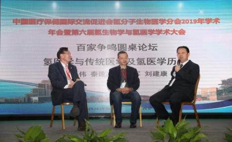 會議期間,山東第一醫(yī)科大學(xué)的秦樹存教授給大家?guī)砹祟}為“Biomedical effects of hydrogen benefit prevention and treatment of cardiovascular & cerebrovascular disease”的報告,上海同濟大學(xué)附屬同濟醫(yī)院的金玲講師為大家介紹了“鼻呼出一氧化氮在富氫鹽水灌洗鼻腔治療變應(yīng)性鼻炎中的變化及意義”,山東第一醫(yī)科大學(xué)的趙曉民教授以“Inhibitory effects of hydrogen on in vitro platelet activation and in vivo prevention of thrombosis formation”為題進行了報告,空軍軍醫(yī)大學(xué)的陳濤講師介紹了有關(guān)“分子氫對多種眼部疾病動物模型干預(yù)效果的研究”,山東第一醫(yī)科大學(xué)宋國華教授介紹了“氫分子對脂多糖誘導(dǎo)的小鼠骨髓源性巨噬細(xì)胞炎癥極化的調(diào)控作用及機制”,西安交通大學(xué)的龍建綱教授進行了題為“Molecular hydrogen: A novel mitochondrial nutrient”的報告,西南交通大學(xué)碩士于涵介紹了“細(xì)胞富氫培養(yǎng)環(huán)境的構(gòu)建及其在氫氣修復(fù)人臍靜脈內(nèi)皮細(xì)胞氧化應(yīng)激研究中的應(yīng)用”,西安交通大學(xué)碩士杜冬玥以“Quality detection of hydrogen-rich water generators”為題進行了報告。報告結(jié)束后杜元偉、孫學(xué)軍和劉健康教授就氫醫(yī)學(xué)與傳統(tǒng)醫(yī)學(xué)及氫醫(yī)學(xué)歷史開展了百家爭鳴圓桌論壇會。