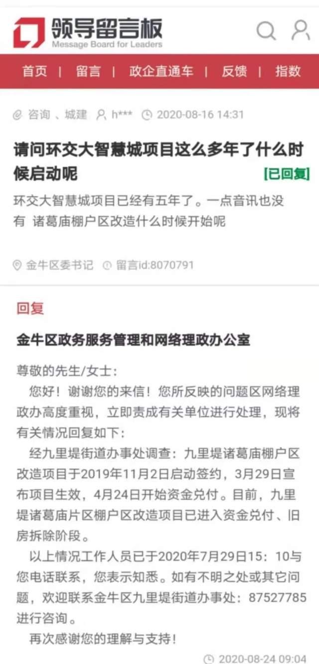 雖然新都區(qū)與西南交大的全面合作比金牛區(qū)晚了三年,但已經(jīng)能看到企業(yè)落地,而且還有氫能技術(shù)省外輸出等成果顯現(xiàn),而金牛區(qū)的「環(huán)交大智慧城」卻遲遲未見動(dòng)靜,以至于去年8月份,有人到人民網(wǎng)領(lǐng)導(dǎo)留言板上詢問項(xiàng)目啟動(dòng)時(shí)間。