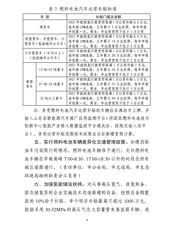 濰坊市《關(guān)于支持氫能產(chǎn)業(yè)發(fā)展的若干政策(征求意見(jiàn)稿)》全文: