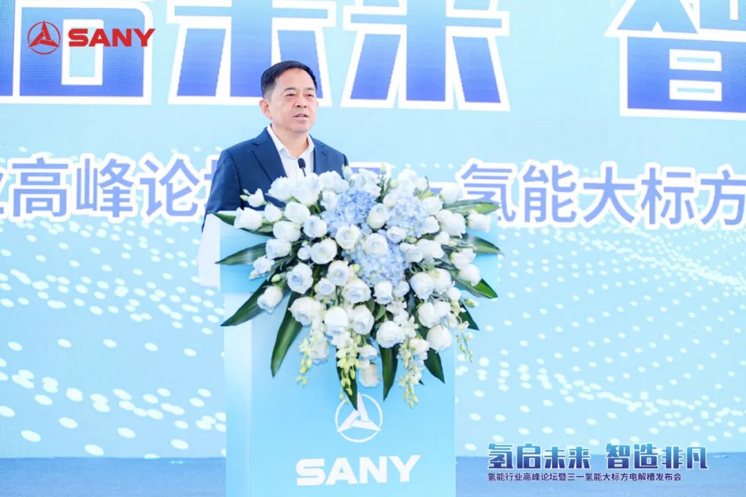 三一集團黨委書記、輪值董事長向文波致辭表示,三一集團正在舉全集團之力實施全球化、數智化、低碳化轉型戰略。圍繞國家要求及行業發展現狀,三一氫能統籌聚力、創新聚能、研發聚焦,在規模化風光綠電制氫的新場景下提出新方案,并在風光綠氫示范項目上率先使用,成功攻克大型電解槽技術挑戰,在氫能裝備工業化進程中邁出堅實一步。