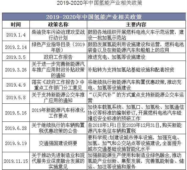 2019-2020年中國氫能產(chǎn)業(yè)相關(guān)政策