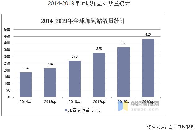 加氫站數(shù)量方面,據(jù)統(tǒng)計(jì),2019年全球加氫站數(shù)量達(dá)到432個(gè),2015-2019年全球加氫站保有量增加了135%。