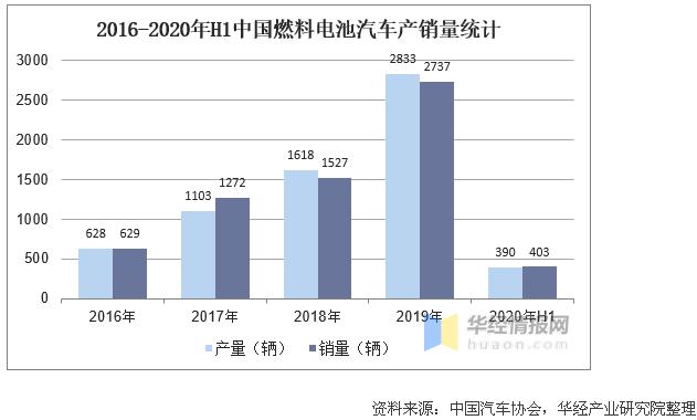 2016-2020年H1中國燃料電池汽車產(chǎn)銷量統(tǒng)計(jì)