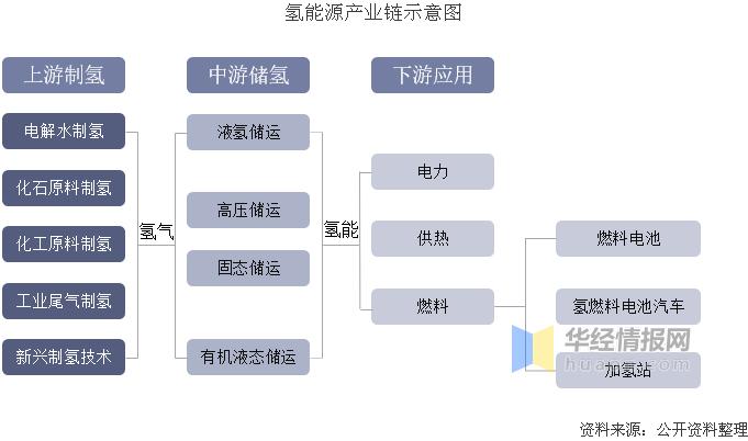 氫能產(chǎn)業(yè)鏈上游為氫氣的制備,主要技術(shù)方式包括傳統(tǒng)能源的化石原料制氫法、化工原料制氫法、工業(yè)尾氣制氫法、電解水制氫法以及新型制氫技術(shù)等。氫能儲(chǔ)量大、比能量高、可貯存、可運(yùn)輸,氫能源產(chǎn)業(yè)鏈的中游就是儲(chǔ)存環(huán)節(jié)。目前,氫能的主要儲(chǔ)運(yùn)技術(shù)包括高壓氣態(tài)、低溫也太、固體材料儲(chǔ)運(yùn)以及有機(jī)液態(tài)儲(chǔ)運(yùn)等。下游是氫能的應(yīng)用,涉及到能源的多個(gè)方面,除了傳統(tǒng)石化工業(yè)應(yīng)用如合成氨、石油與煤炭深加工外,還包括加氫站、燃料電池汽車等領(lǐng)域的應(yīng)用。