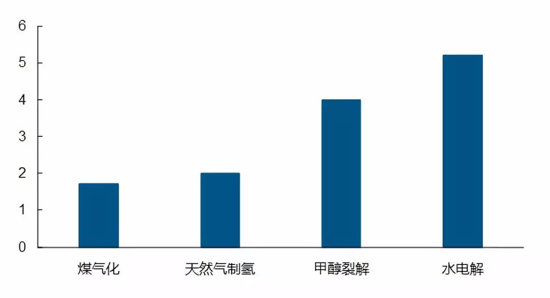 主要制氫技術(shù)成本對(duì)比(美元/千克)(來(lái)源:華創(chuàng)證券)