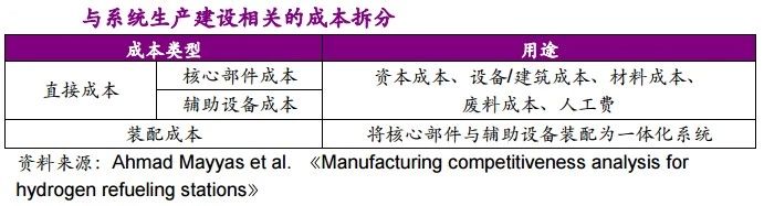 另外,考慮到系統建設產生的裝配成本,可以得到加氫站生產和建設相應系統所需的成本。