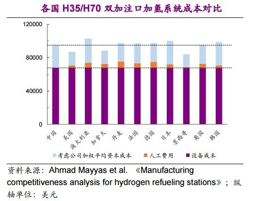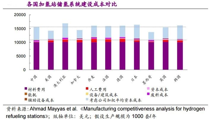 (3)我國加氫站儲氫系統的建設成本優勢仍來自于中國低廉的勞動力成本。