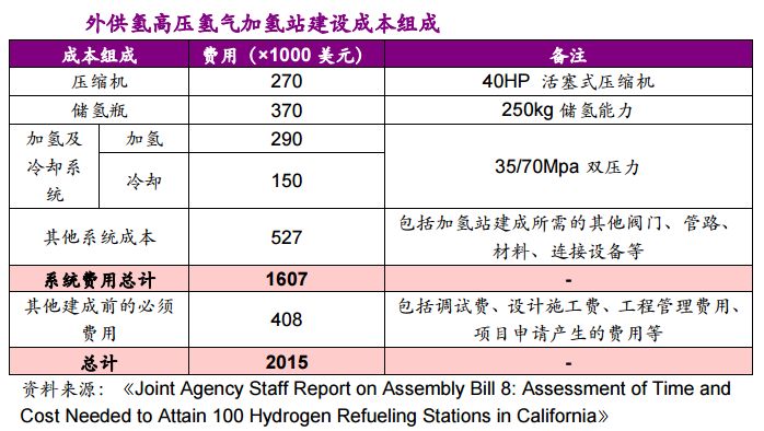 為了比較不同類型加氫站的建設成本,我們以2015財年,加州三種不同類型加氫站的建設成本為例進行分析。