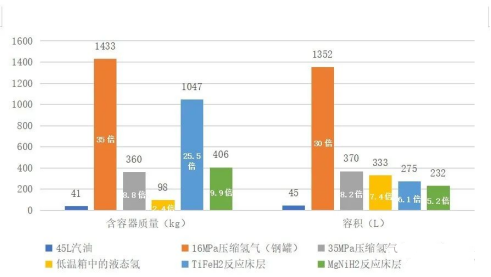 1. 質量體積密度相比其他儲氫方法較小,儲氫效率不高。