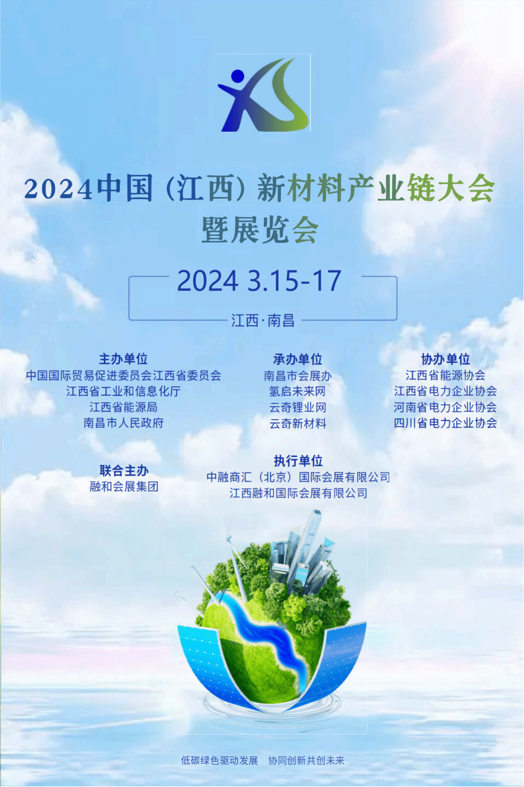為促進新能源、新材料全產業鏈業務交流和投資合作,由中國國際貿易促進委員會江西省委員會、江西省工業和信息化廳、江西省能源局、南昌市人民政府主辦的“2024中國(江西)新材料產業鏈大會暨展覽會”將于2024年3月15日至17日在南昌舉辦。不僅有新能源、新材料產業鏈頭部企業高規格出席,更有業內院士專家、行業頂級大咖盡數到場,激烈碰撞思想火花。