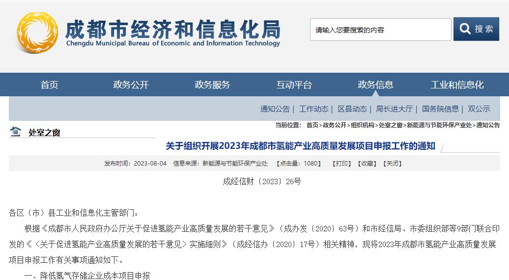 氫啟未來(lái)網(wǎng)獲悉,8月4日,成都市經(jīng)濟(jì)和信息化局發(fā)布關(guān)于組織開展2023年成都市氫能產(chǎn)業(yè)高質(zhì)量發(fā)展項(xiàng)目申報(bào)工作的通知。