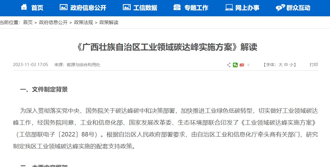 氫啟未來網(wǎng)獲悉,近日,廣西壯族自治區(qū)工業(yè)和信息化廳與廣西壯族自治區(qū)發(fā)展和改革委員會、廣西壯族自治區(qū)生態(tài)環(huán)境廳聯(lián)合印發(fā)了《廣西壯族自治區(qū)工業(yè)領(lǐng)域碳達峰實施方案》(以下簡稱:實施方案)。