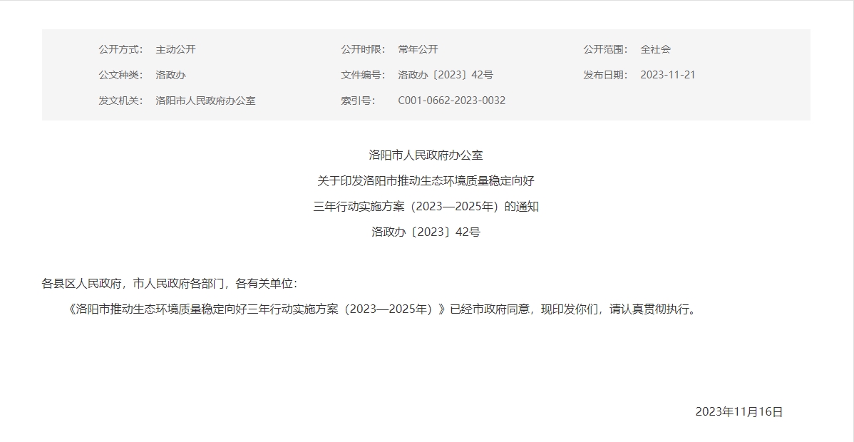 [ 導讀 ]《洛陽市推動生態環境質量穩定向好三年行動實施方案(2023-2025年)》