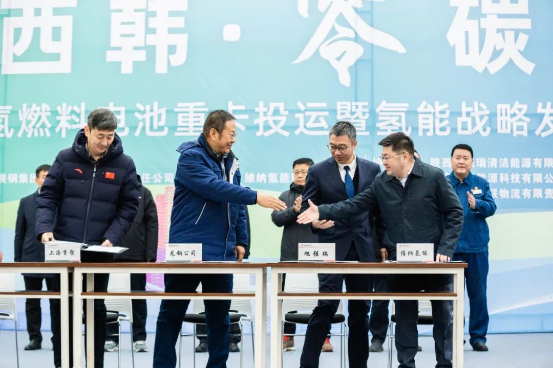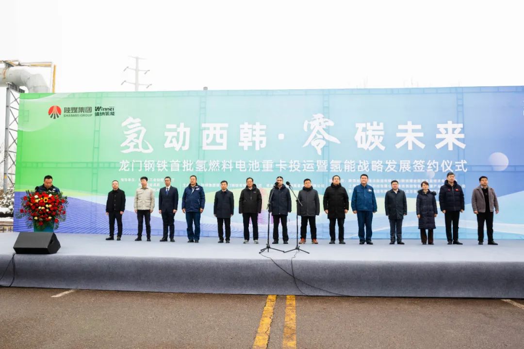 1月18日,由陜西省工業(yè)和信息化廳、陜西省能源局、韓城市人民政府指導,陜鋼集團陜西龍門鋼鐵有限責任公司(以下稱:龍鋼公司)主辦,維納氫能承辦,陜西旭強瑞清潔能源有限公司、上海重塑能源科技有限公司、北京氫璞創(chuàng)能科技有限公司協(xié)辦的“龍門鋼鐵首批氫燃料電池重卡投運暨氫能戰(zhàn)略發(fā)展簽約儀式”在韓城市龍門鋼鐵廠區(qū)成功舉辦。